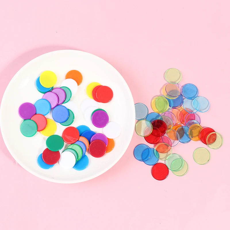100pcs Transparent Color Counters Counting Bingo Chips Plastic Supplies Counters